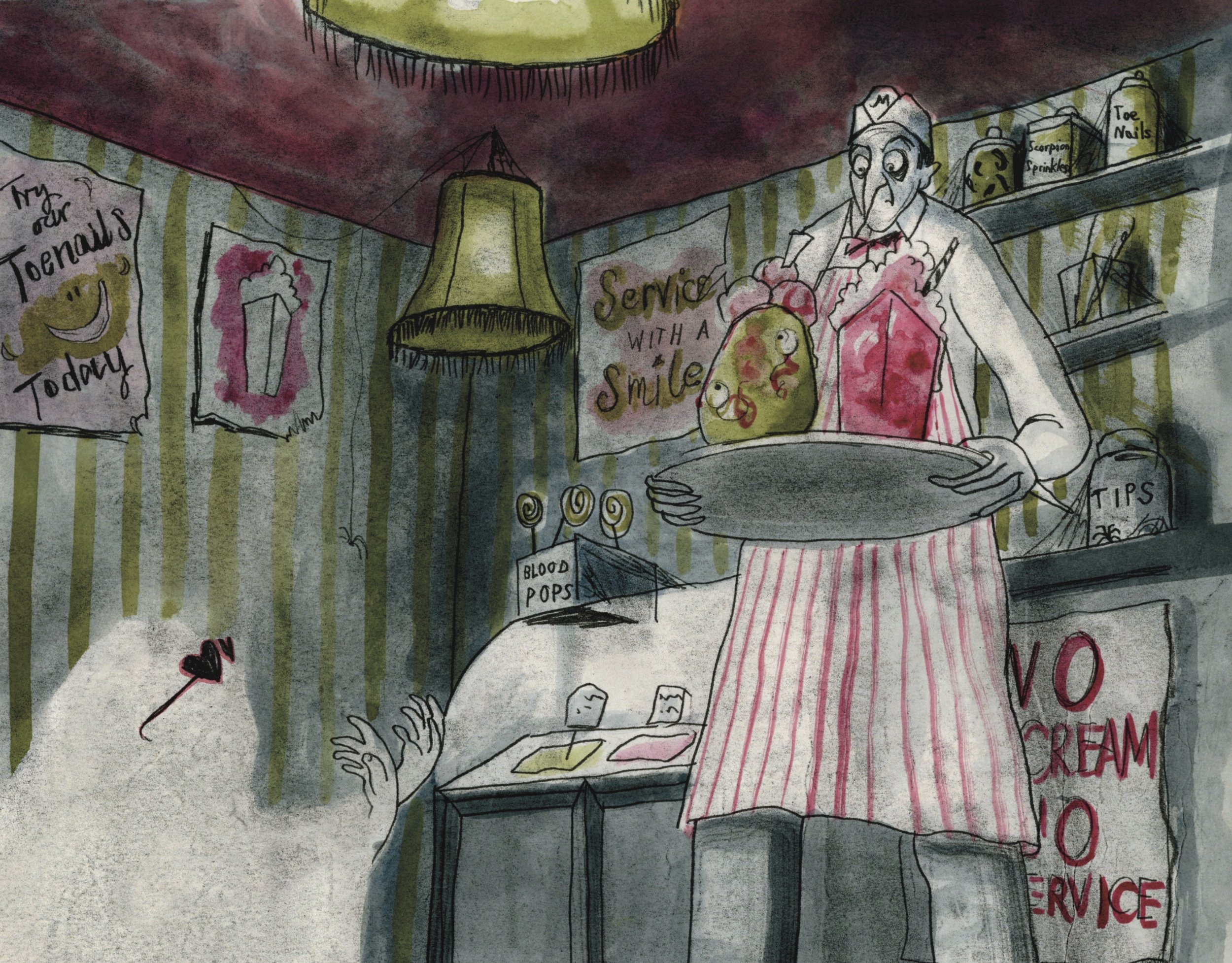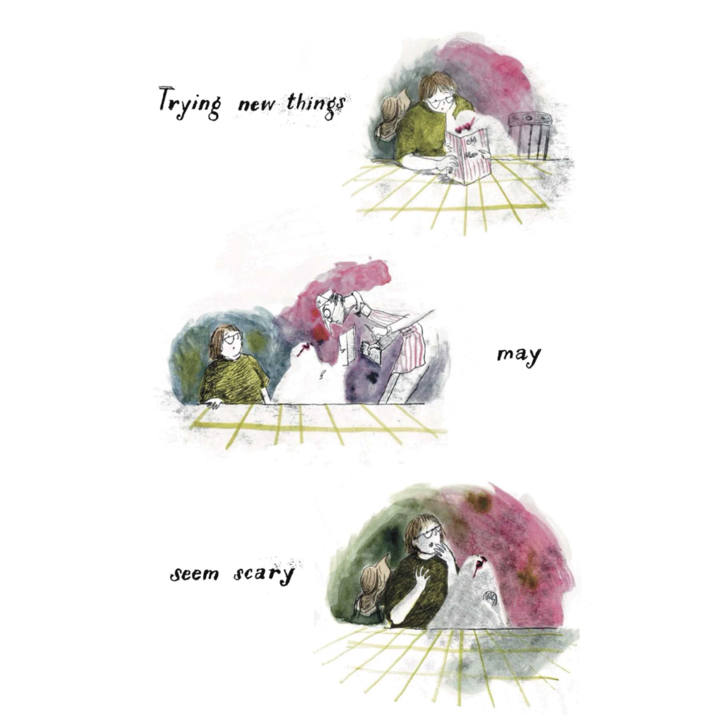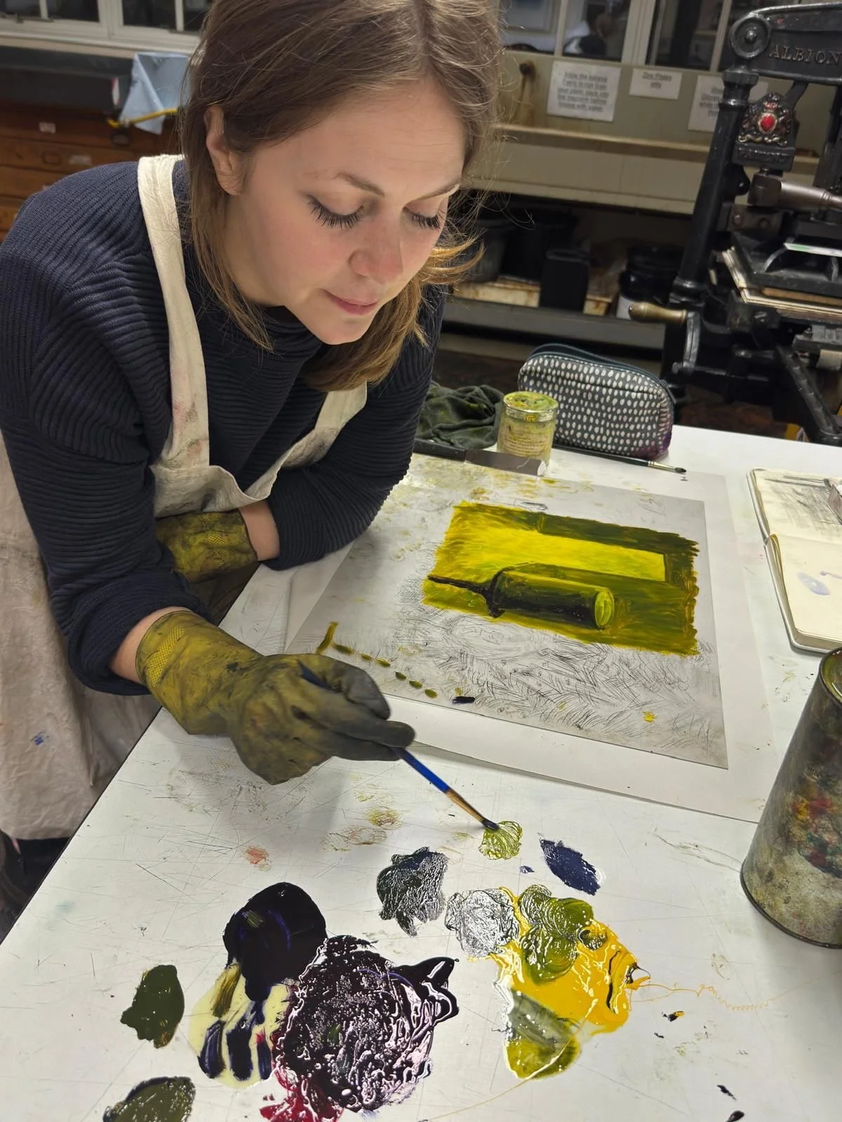 She enjoys anything spooky, mysterious, or mischievous and likes to explore these themes in a playful, humorous way. Charlotte’s favourite part of each project has been immersing herself in the world of the story, and chewing over problems until vague ideas take shape, like a jigsaw puzzle. She has loved the creative challenge of using every part of the book-from the images, to the text, to the endpapers- to add detail and depth to the narrative. Her current media of choice are transfer monoprint and TetraPak, for the atmosphere they can create.